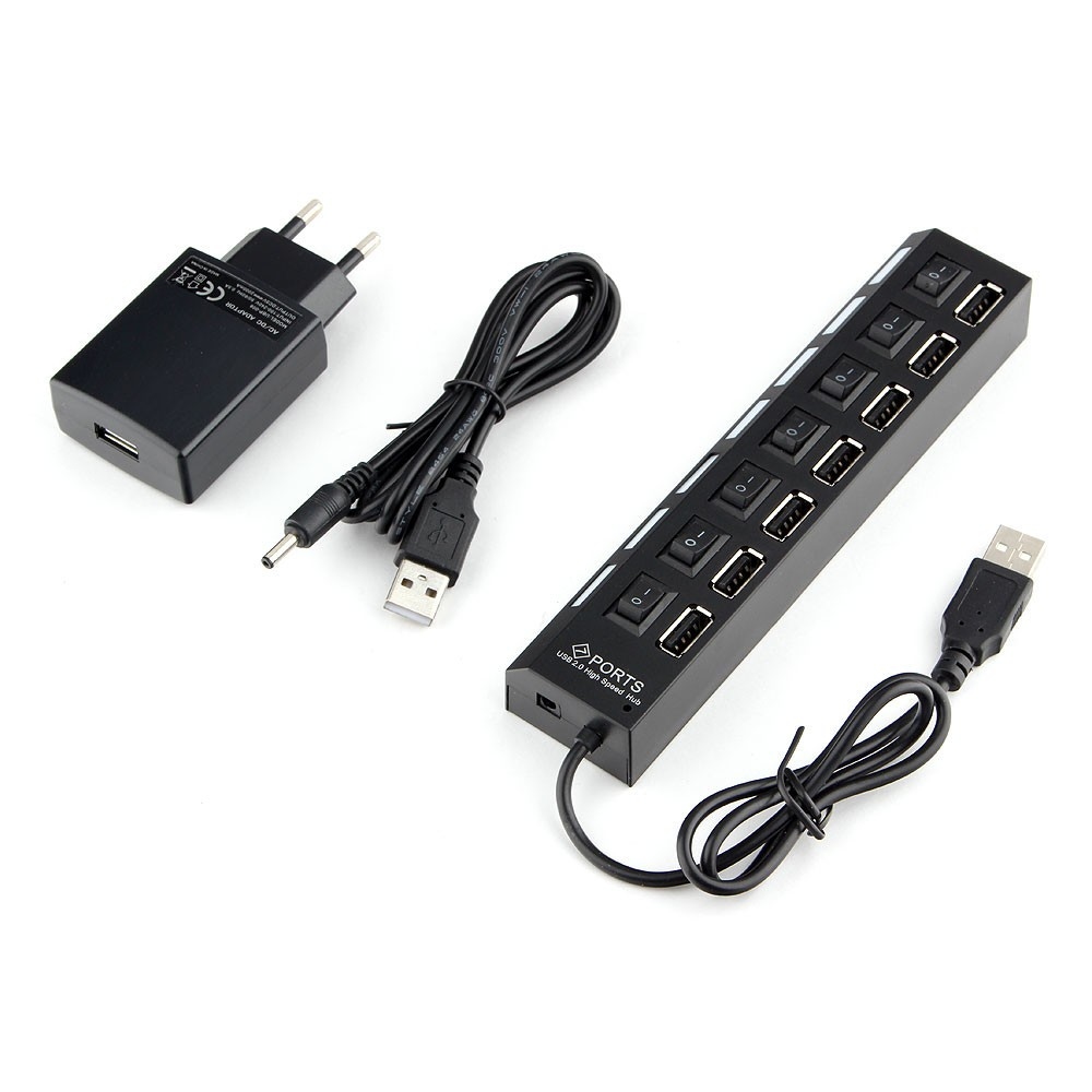 Napájecí napětí v USB portech je každopádně 5V ss. Na vstupním šlahounu, který se připojuje do PC, a nejlépe taky na sedmi podružných zásuvkách :-) Pokud to změříte pod zátěží, patrně naměříte o něco méně než 5V : úbytky na přechodových odporech jsou nevyhnutelné, občas vidím že někdo vloží do obvodu pro jistotu diodu proti přepólování apod. Ale obecně, pokud připojíte zvenčí do tohu dutého jacku +5V, chybu skoro jistě neuděláte. (Otázka je, jestli tomu nechybí nějaké součástky uvnitř.) Teoreticky, pokud hubu přivedete externí napájení +5V a necháte mu odpojený USB uplink, a rozsvítí se LEDky srovnatelnou intenzitou, jako když je hub napájený z USB, jste patrně doma :-)